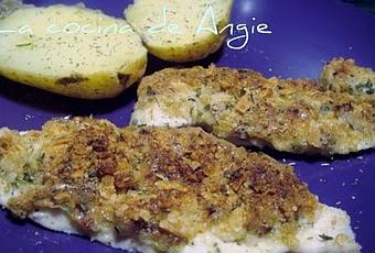 - Untar los filetes de pollo con la crema de la costra, y luego espolvorear con la mezcla del gratinado. Hornear durante 20´ a 220º.