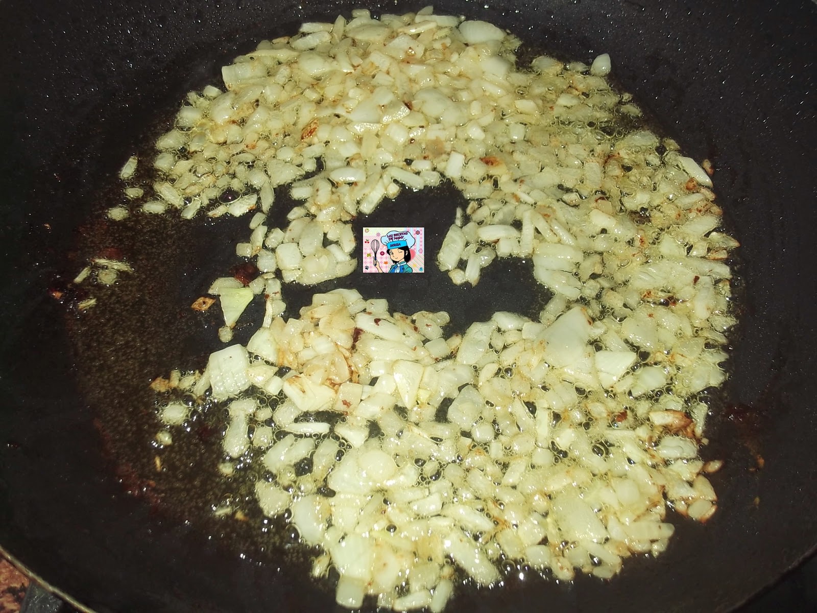 En la misma sarten del pollo agregamos la cebolla picadita y la dejamos sofreír