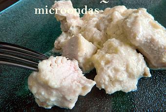 Tapamos, metemos en el micro unos 4 minutos potencia máxima (800w), movemos y volvemos a poner otros cuatro minutos. (deja reposar un par de ellos) y comprueba que esté el pollo en su punto.