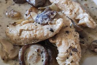 500 gr. de solomillo de pechuga de pollo 400 gr de setas variadas o 1 bolsa de setas variadas congeladas 1 Puerro finamente cortado