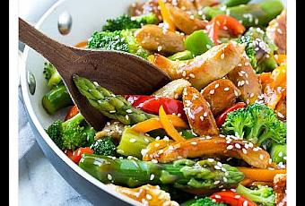 Corta en tiras finas las zanahorias, berenjenas y calabacines. Agrégalo al wok y remueve para integrar los sabores. Aplica sal, pimienta y salsa de soja al gusto. Sigue removiendo hasta que el pollo llegue a su punto de cocción. Retira del fuego. Decora con semillas de sésamo.