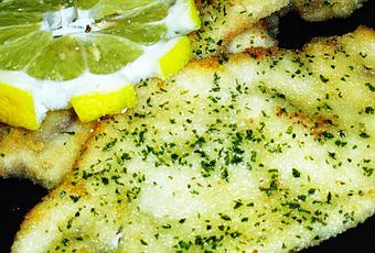 Decidí preparar filetes de pollo empanados, pero en lugar de pasarlos por huevo y pan rallado, cambié el huevo por zumo de limón.