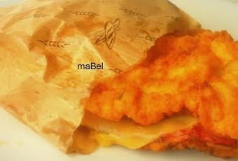 Un sandwich sin pan, hecho con pechugas tiernas empanadas, rellenas con queso, bacon y salsa especial.