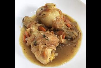 Hoy os traemos una receta sencillísima de hacer y que es como las que nos preparan nuestras madres y abuelas, ¡está llena de sabor!Ingredientes para 2 personas:- 6 muslos de pollo de corral de Nutrave- 2 zanahorias - 1 cebolla- 2 dientes de ajo- 300 ml de caldo de pollo- Vino blanco- Aceite de oliva- Sal- Pimienta negraReceta:- Lava la zanahoria.- Pela la cebolla, el ajo y la zanahoria.- Corta la zanahoria en rodajas, la cebolla en tiras y el ajo en cuadraditos.- En una olla grande con un chorrito de aceite de oliva, rehoga las verduras a fuego medio hasta que se ablanden.- Salpimenta los muslos de pollo.- Colócalos encima de las verduras y rehógalos hasta que se doren.- Vierte un chorrito de vino blanco y deja que se cocine para que se evapore el alcohol.- Añade el caldo de pollo hasta que cubra los muslitos y deja que se reduzca el caldo.Bon appétit!