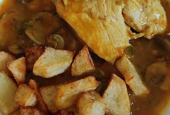 Hoy nuestro pollo en salsa, está hecho con contramuslos deshuesados y sin piel