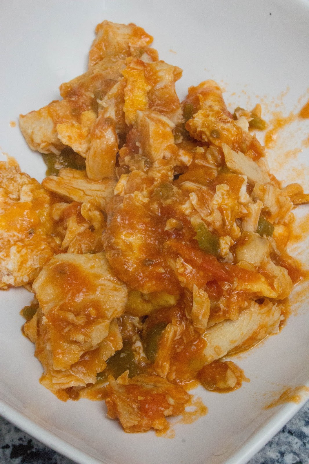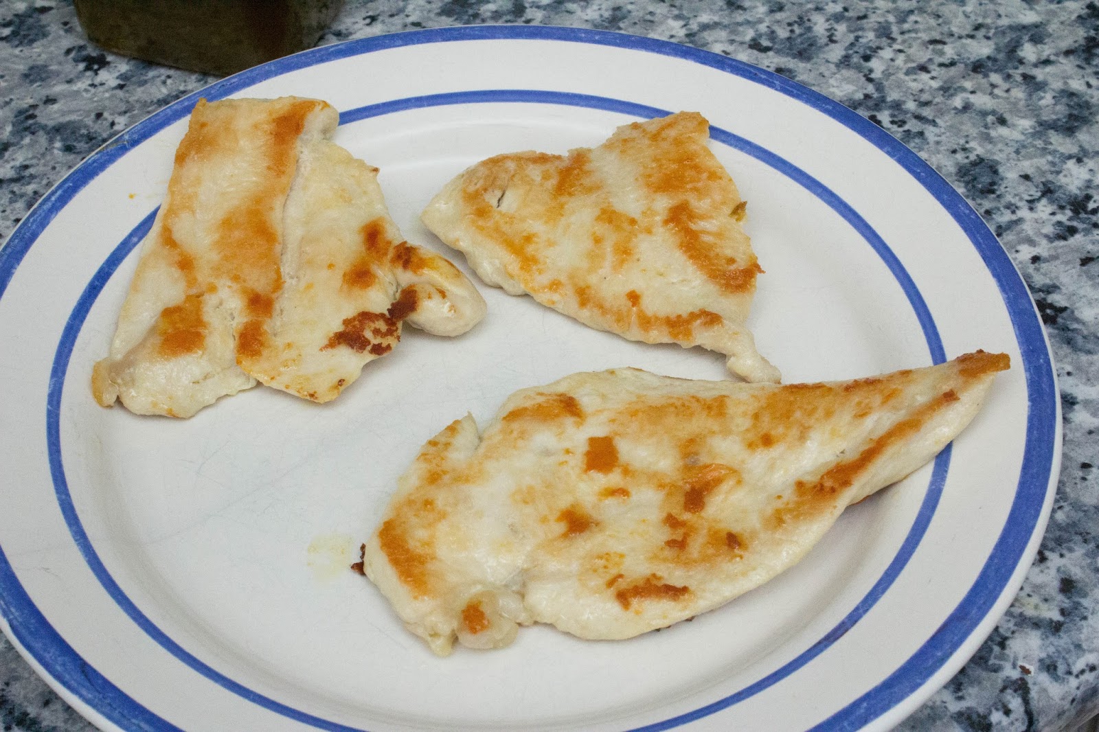 Ingredientes:3 filetes de pollo2 huevos1 tarro tomate frito1 lata de atún1 pimiento verde