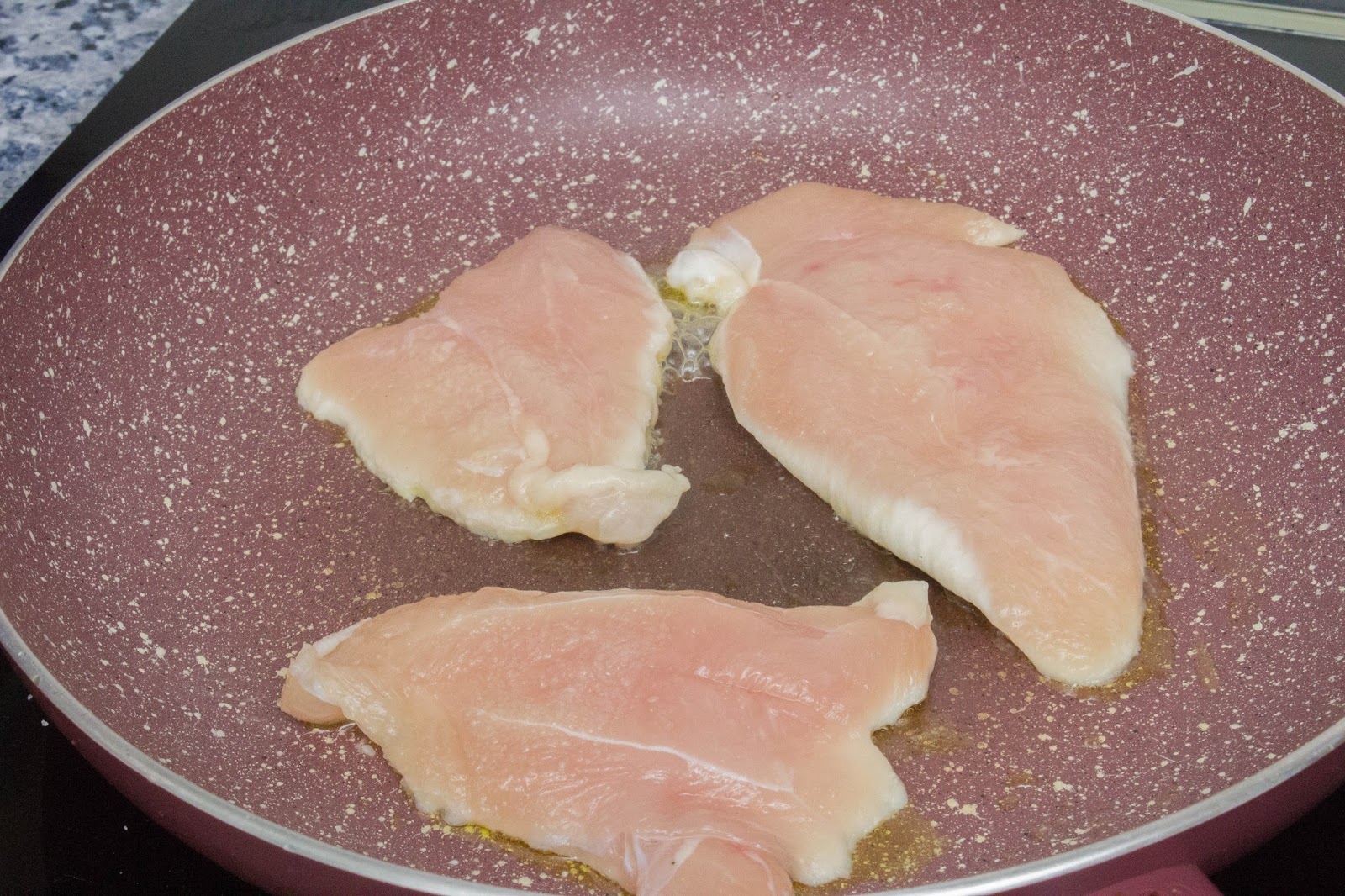 Cuando esté dorado el pollo lo sacas y lo reservas.