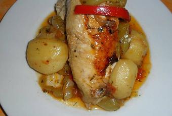 - Lo mejor es que el pollo y las verduras se cocinan en sus propios jugos, más la suma del vino que le da un sabor único.
