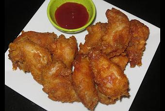 Sacamos las alitas las escurrimos un poco y las rebozamos con el resto de harina. Ponemos abundante aceite en una sartén y según vamos rebozando el pollo lo freímos. Sacamos a un papel absorbente y lo acompañamos con la salsa que más nos guste.