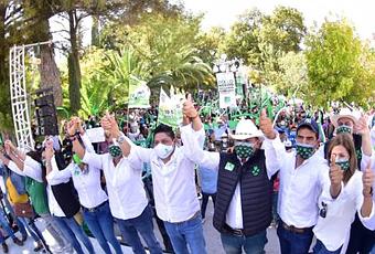 Matehuala.- Este día arrancaron las actividades de precampaña por parte del precandidato por el Partido Verde Ecologista de México (PVEM), José Ricardo Gallardo Cardona “El Pollo”, en donde se dieron cita militantes, simpatizantes y actores políticos.
