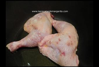 Lavamos y secamos bien el pollo, salpimentamos y doramos en una sartén con aceite.