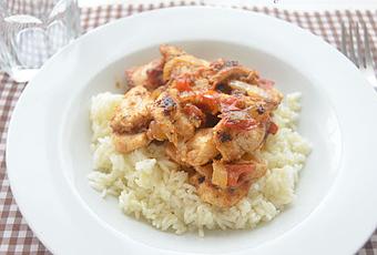 Yo en esta ocasión lo he acompañado con un poco de arroz blanco pero vosotros podéis acompañarlo con ensalada, pasta o con lo que más os guste.