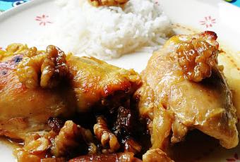 Una de las características de la cocina marroquí, es el uso de especias y frutos secos y eso es lo que he utilizado para preparar este pollo combinando varias recetas de pollo al estilo marroquí. Este pollo aromatizado con canela y azafrán y acompañado de dátiles, pasas y frutos secos, es un plato que seguro que os gustará. Lo acompaño con arroz basmati al que le pongo una cucharadita de curry, aunque esta vez lo puse después de haber hecho las fotos. Tanto si le ponéis curry como si no, el arroz basmati tiene suficiente aroma y acompaña maravillosamente a este pollo. Espero que os guste.Seguir leyendo...