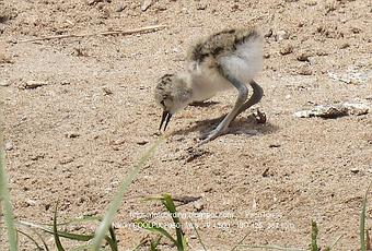 Un polluelo de cigüeñuela practicando aleteo, preparándose para sus primeros vuelos.