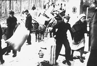 (Robo de pertenencias de judíos deportados por parte de civiles polacos en Olkuzs, foto sacada de Somewereneighbors)