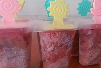 - Trituramos la fruta congelada en la batidora y rellenamos los moldes de helado.