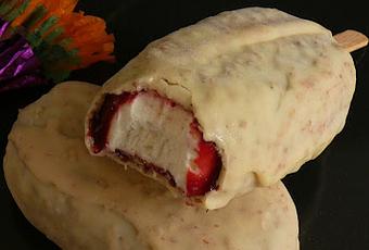 Bañamos cada polo en el chocolate blanco y llevamos de nuevo al congelador, unas 8 horas.