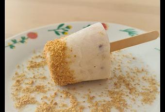 - Reparte esta mezcla en los moldes, clava el palito y deja en el congelador unas horas, o de un día para otro.