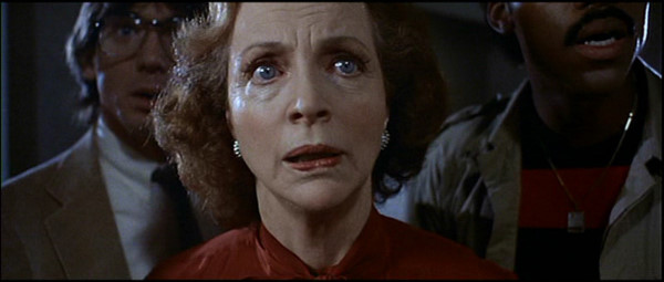 No pasa mucho tiempo antes de que los acontecimientos que ocurren en la casa de los Freeling tomen un cariz mucho más macabro. Lamentablemente a mi gusto, la transición entre los sucesos paranormales más “amistosos” y lo francamente terrorífico es demasiado abrupta. De sillas que se mueven solas, rápidamente se pasa a árboles que adquieren vida propia y que de paso intentan asesinar al pequeño Robbie (Oliver Robins), y a portales interdimensionales que se abren en medio de la pieza de los niños tragándose literalmente a Carol Anne. Luego de la desaparición de la niña, los padres deciden recurrir a un grupo de parasicólogos liderados por la Dra. Lesh (Beatrice Straight), quien eventualmente deberá pedirle ayuda a una psíquica llamada Tangina (Zelda Rubinstein), la cual es la única persona que puede rescatar a Carol Anne del lugar en el que se encuentra. Evidentemente “Poltergeist” comienza explorando algunos de los temores propios de la infancia (como el miedo a la oscuridad, a las tormentas, y a los “monstruos que habitan en el closet”, entre otras cosas), para luego explotar temores más propios de la adultez, como el miedo a perder a los hijos o los logros de una vida de trabajo. Al mismo tiempo, se le intenta dar un tono más serio al tema de la parasicología mediante la inclusión de científicos que no sólo intentaran descubrir cuál es la fuente de los sucesos que ocurren en la casa de los Freeling, sino que además deben validar científicamente sus descubrimientos.