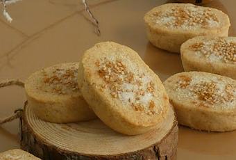Tostamos ligeramente la harina en una sartén o en el horno. La dejamos enfriar. En un bol ponemos el azúcar, la almendra molida, el ajonjolí, añadimos la harina tamizada, mezclamos bien. Le añadimos el aceite y amasamos. Tapamos con un plástico. Dejamos en la nevera 20 minutos.