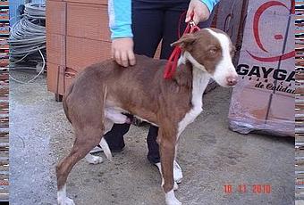 Aquí tenéis a Poly, otro de los muchos podencos que se abandonan en nuestro país cuando a su dueño no le sirve para la cacería. Otro que acaba tirado en la carretera sin chip y sin saber a donde ir.