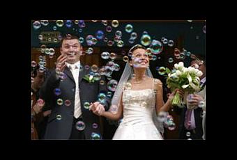 Tenéis varias opciones, contratar una empresa para que realice las burbujas o comprar los pomperos y repartirlos entre los invitados para que os ayuden a conseguir esa magia de jabón.