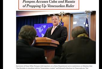 Cuba ha denunciado la tendencia a mentir sin límite ni freno alguno de parte del gobierno de EE.UU., además de John Bolton y otros, lo vuelve a hacer el secretario de Estado, Mike Pompeo.Washington insiste en sus mentiras y los medios corporativos replican para imponer sus matrices de opinión. Pompeo, acusó este lunes (11.03.2019) a los Gobiernos de Cuba y Rusia de "intervencionismo" por apoyar al "ilegítimo" presidente de Venezuela, Nicolás Maduro, según agencias internacionales.