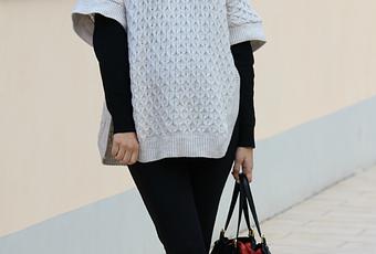 Vaya cara de frio tengo!!! Estoy deseando ya que llegue el buen tiempo. Este poncho me está viniendo muy bien ya que es muy sueltecito y no me aprieta la barriga y además es calentito, con un sweater de cuello alto debajo y mis leggins premamá. Ya me han dado los resultados de Test de O´Sullivan y está todo bien, que tranquilidad!! Un besazo y feliz miércoles.