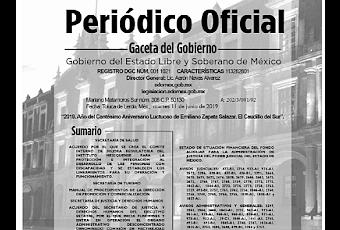 El acuerdo puede consultarse en la edición en línea del Periódico Oficial: http://legislacion.edomex.gob.mx/sites/legislacion.edomex.gob.mx/files/files/pdf/gct/2019/jun111.pdf.