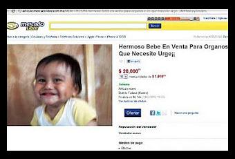 El mundo está loco, quizá demasiado. En el portal de internet 'Mercado Libre' ponen a la venta un bebé, "para la venta de órganos o para lo que se necesite", por 20.000 pesos al contado.