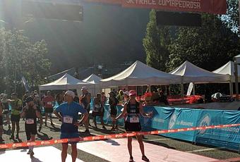 Tercera lección: llevar el material adecuado! acabé con los palos de un chico que me los dejó para subir y que me fueron muy bien al bajar pues me pusé unas zapatillas de trail que jamás uso y me iban pequeñas. Cuando bajas un desnivel tan bestia, las zapatillas juegan un papel muy importante. Acabé con una uña partida, gasté más de una hora en llegar a la meta porque no podia caminar! literalmente! Así que después de haber subido lo más rápido posible, sin poder casi respirar, sin conocer el camino…cuando ya podia liberarme un poco en la bajada…resulta que necesito los palos como muletas!