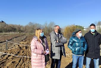 El alcalde de Ponferrada, Olegario Ramón, acompañado de laconcejala de Infraestructuras, Carmen Doel, y del concejal de Sostenibilidad Medioambiental, Pedro F. Robles, visitaron la obra de ejecución de huertos urbanos que el Ayuntamiento ponferradino está poniendo en marcha en una parcela próxima al Paseo del Río, a la altura de la calle Batalla de Bailén, en el punto donde confluye con el sendero de subida al parque del Temple.