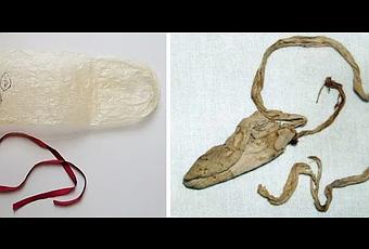 Ese preservativo, el primero, que se sepa, de la historia de la Humanidad, consistía en funda de lino fino, empapada en aceite de oliva y unida a un cordón que se ataría a la cintura. También nos llegaron condones de la época de los romanos, de similares características.
