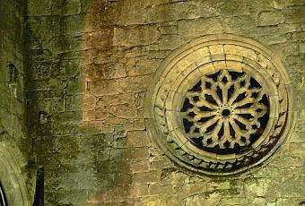 Rosetón de una catedral o convento, no estoy segura, que, al igual que las Ruinas do Carmo en Lisboa, está falta de techo.