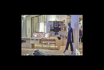 Con gruesos bancos de trabajo de madera contrachapada, estantes y vitrinas de corcho, el espacio se creó con la intensión de transmitir la sensación de ser un , donde los clientes podían interactuar y realizar consultas a los sastres de la casa, personalizando sus vaqueros y chaquetas mediante parches, rasgones y adornos. Dentro de la gama de servicios que ofrecieron al público se incluyó, además, una edición limitada de remiendos bordados diseñados en colaboración con la modelo británica Poppy Delevingne.