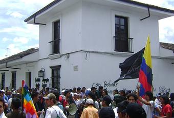 Las principales calles de la ciudad blanca de Colombia, se inundaron la mañana de hoy, 5 marzo. Sindicalistas, usuarios de servicios públicos, viviendistas, indígenas, docentes y estudiantes, en una voz decían "Abajo el TLC, Viva el Paro Campesino". La multitudinaria manifestación de solidaridad con el paro cafetero que tenía como punto de partida la plazoleta de la iglesia de San Francisco fue convocada por la Coordinación de organizaciones sociales y populares del Cauca.