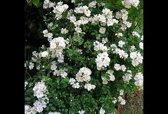 Las flores son chiquitinas, blancas, numerosas, en panículas. Enseñan los estambres, muy en el estilo polyantha, y tienen un agradable aroma que, personalmente, me recuerda a la miel que en La Alcarria se llama 'mil flores'. El follaje es muy sano.