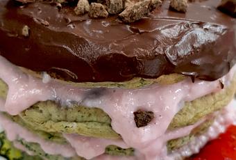 - Vamos alternando una capa de tortitas con un poco de relleno.