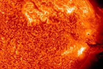 Gracias al twitter de la NASA (@NASA), descubrí la impresionante eyección solar que tuvo lugar ayer mismo. El Sol expulsó una cantidad ingente de masa. En breves instantes creció una nube de partículas eyectadas que volvieron a caer sobre su superficie, ¡cubriendo un área de casi la mitad de la superficie del Sol! La información sobre este espectacular fenómeno la tenéis en la web de la Nasa. Aquí os dejo con una fotografía del momento de la eyección solar, una de las imágenes más espectaculares que he visto nuca: