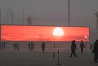 En China en muchas ocasiones se han detenido las actividades normales de sus ciudadanos por los elevados niveles de polución ambiental, se han tomado medidas como la de que los adultos mayores no salgan de las casas y los niños no vayan al colegio. Ahora las pantallas que eran utilizadas para promover eventos o lugares turísticos están transmitiendo el amanecer para que sus ciudadanos lo puedan ver al menos por este medio, ya que los niveles de smog en el aire impiden el paso de la luz del sol.