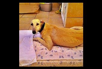 Las tengo en casa, pero tengo dos perros mas y una gata, estan en el patio porque no dispongo de tanto sitio en casa para tenerlas, son un amor de perras, superbuenas y muy cariñosas, las dos se dan besitos mutuamente, mañana las bañare, pero LEIRE tiene una cojera en la pata trasera y esta bastante hinchada, no se si sera de un atropello, pero la apoya muy poco y no se si sera roto o luxacion...