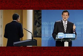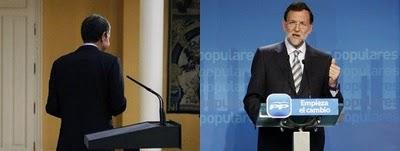 Zapatero de espaldas y Rajoy de frente, creyéndose ya en la Moncloa.
