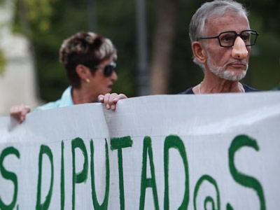 Por su parte, un grupo de medio centenar, integrantes de la asamblea del barrio madrileño de Morataraz y afines al los del 15-M se reunió en las inmediaciones del Congreso para celebrar el fin de la que consideran la “peor” y “más vergonzosa” legislatura de la democracia española. Entre globos de colores y llamativas pancartas, los manifestantes entonaron algunas canciones de protesta y no dudaron en pasar por delante de las Cortes con el “Adiós con el corazón”. Criticaron a políticos y diputados por “liquidar el modesto Estado de Bienestar español” y se alegraron de que “los peores diputados en años, por fin, se vayan! Uno de ellos explicaba que “sus señorías lo han hecho tan mal que nos han hecho salir a la calle”. Finalmente, llegaron al Paseo del Prado, donde leyeron un manifiesto en el que acusaron a los diputados de dar un “violento cambio de rumbo sin consultar a nadie” al “aceptar las órdenes de los mercados financieros. ¡Por eso celebramos el despido procedente que representa la disolución de esta legislatura!”. Y, antes de marcharse con la música a otra parte, advirtieron a los ex parlamentarios: “Por favor, en estas condiciones, ¡no volváis nunca más! Aunque si volvéis, os estaremos esperando”.