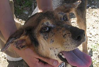 KENY tiene leishmania cutánea y necesita cuidados especiales que no podemos darle en el refugio. Nosotros estamos muy limitados y no disponemos de casas de acogida donde puedan darle los cuidados que necesita.