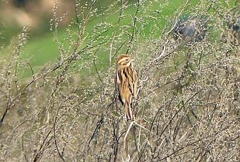 Una de estas zonas es la campiña de Verdicio al este de la playa. Hace unos pocos días realicé un pequeño recorrido por allí para detectarlos. En esta zona destaca especialmente la invernada de un notable núcleo de escribano palustre Emberiza schoeniclus, uno de los más importantes de Asturias. Esto se debe sobre todo a que en las proximidades hay un extenso carrizal que utilizan por la noche como dormidero.