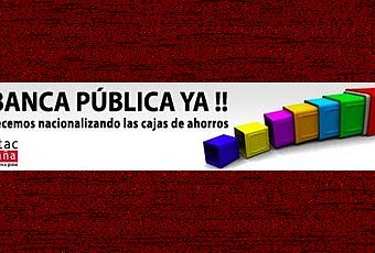 Campaña por la nacionalización de las Cajas de Ahorros. La situación actual de la economía española es preocupante. La crisis provocada por "los mercados" está teniendo severas repercusiones sociales, que afectan fundamentalmente a la población más vulnerable. Repercusiones que se agravarán por los efectos recesivos que van a tener las recientes medidas de ajuste económico y reforma laboral, impuestas al gobierno por los poderes financieros. Resulta evidente la manifiesta incapacidad de la banca privada para garantizar la necesaria estabilidad financiera y la financiación de la actividad económica, imprescindibles para la recuperación de la actividad económica y del empleo que nos permitan salir de la crisis Para garantizar la estabilidad financiera y la recuperación de la actividad económica y el empleo, ATTAC, a propuesta de su Consejo Científico, reclama de los grupos parlamentarios que procedan a poner en marcha las iniciativas que sean precisas para que el gobierno lleve a cabo con carácter de urgencia la nacionalización de las cajas de ahorros. La mayoría de estas instituciones financieras se encuentran actualmente próximas a la quiebra técnica, y antes que el Estado proceda a su salvamento con fondos públicos como se propone, ATTAC considera que es una ocasión histórica de recuperar su titularidad y gestión publicas y dar pasos efectivos hacia la recuperación una banca pública cada vez más necesaria.