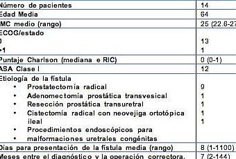 Material y métodosSe revisaron retrospectivamente los registros médicos de todos los pacientes con FRU tratados quirúrgicamente con el procedimiento de York-Mason, entre 1988 y 2000, en el departamento quirúrgico en donde se desempeñan los autores. Los síntomas presentes fueron: fecaluria, neumaturia, infecciones recurrentes del tracto urinario y/o filtración de orina por recto. La mayoría de los pacientes desarrolló una FRU después de una prostatectomía radical retropubiana (PRR). Los pacientes restantes habían sido sometidos a adenomectomía prostática transvesical o cistectomía radical con neovejiga ortotópica ileal. En un paciente, la FRU siguió a varios procedimientos endoscópicos por una malformación uretral congénita. Todos los pacientes, excepto uno, fueron evaluados preoperatoriamente con uretrografía retrógrada, cistoscopía y rectosigmoideoscopía, para confirmar el diagnóstico correcto e identificar el origen de los orificios fistulosos.