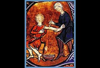 En la Edad Media se pensaba que el desequilibrio de los humores-sangre, flema, bilis y atrabilis o bilis negra-era la causante de la mayoría de los males y que para curarlos había que restablecer la cantidad exacta de sangre en el cuerpo.” Sacando la sangre se saca la enfermedad” era el lema de los médicos. Las extracciones casi siempre se realizaban en primavera, época que se consideraba de renovación para toda la sangre del cuerpo. Las practicaban los barberos: primero metían el antebrazo del paciente en agua caliente, luego le aplicaban un torniquete, el paciente agarraba un palo para que su mano estuviera apretada y, con una lanceta de unos 3 cms,le hacían un pequeño corte, por el que extraían la sangre de una de las cinco venas mayores, cada una de las cuales correspondía a un órgano vital, y eran depositadas en un recipiente donde se medía la cantidad de sangre que se extraía.También se utilizaban las sanguijuelas. El método consistía en poner las sanguijuelas en la parte afectada del paciente y el gusano absorbía la sangre antes de caerse.