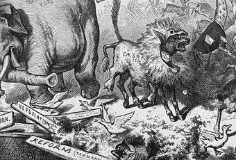 Los principales partidos políticos estadounidenses tienen, cada uno, un símbolo o mascota que se remonta al siglo XIX. Dada su antigüedad, las historias de por qué se adoptaron el elefante y el burro prácticamente se han olvidado en el imaginario colectivo. No obstante, ambas deben su fama a la misma persona: Thomas Nast.