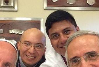 SELFIE PAPAL. Así fue el almuerzo del Papa Francisco con los jesuitas del colegio Javier. La foto fue publicada en el Facebook de la Unidad Educativa Borja – Pastoral